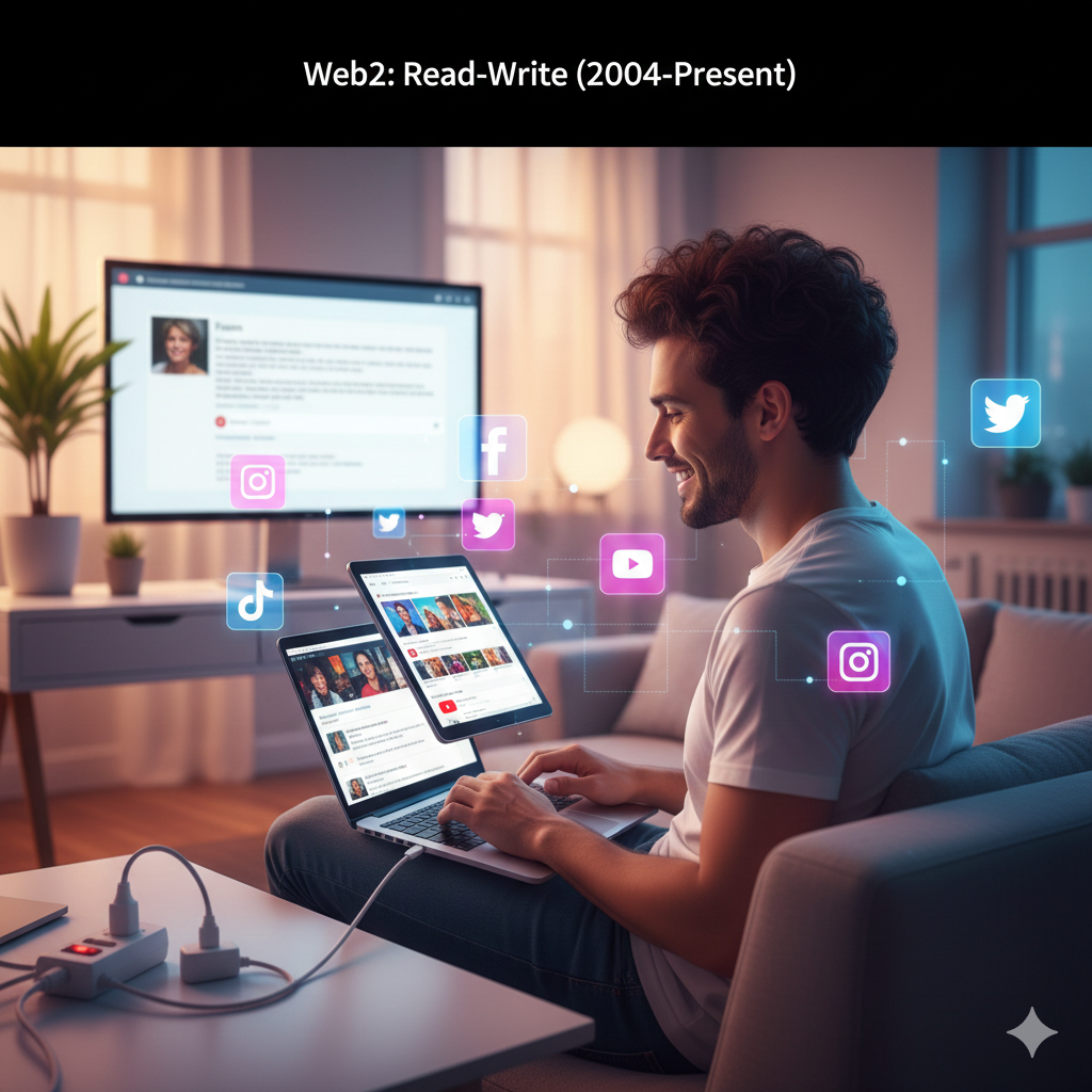 Web2 brought us the “participatory web.” Users became creators and uploaded content to platforms such as YouTube, Facebook, and Instagram. But this era was defined by centralization. Several large technology companies own the servers, manage the data, and profit from user information. Web3: read-write properties (future)